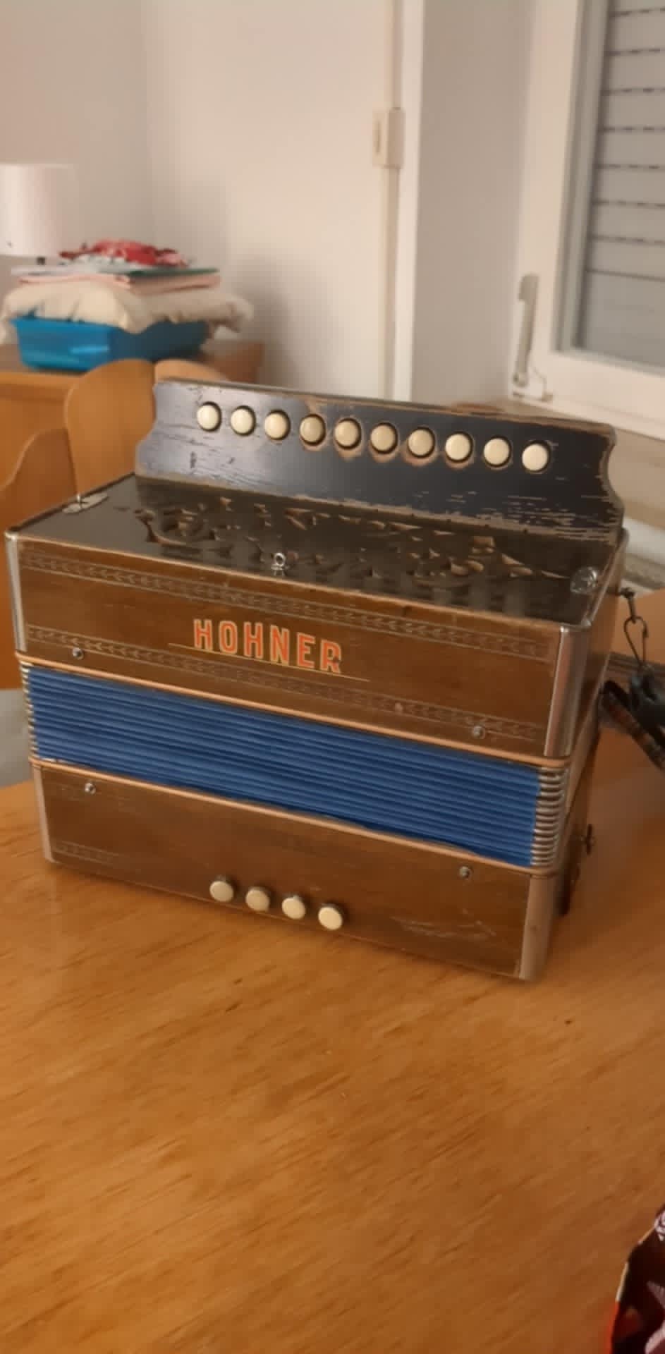 Accordion Service says this is a single row Wiener diatonic accordion No. 181/10/4, built between the 1920s and 1940s. As they have no serial number, it’s not possible to date them more accurately. Hope that helps!