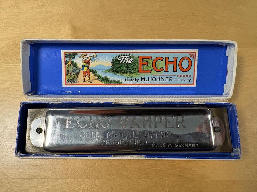 I got this Hohner Echo vamper harp. The tone is Bb. I dont know much about this harp.