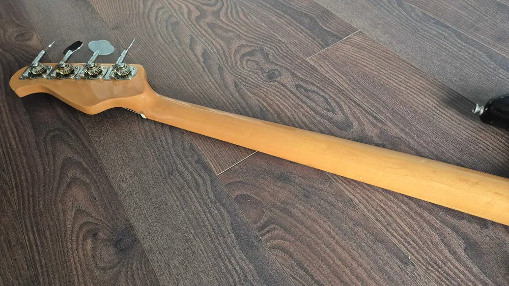 21 nickel silver frets; bolt on one-piece Canadian rock maple neck / Indian rosewood fingerboard; colour: black (RN), white (MN), metallic red; Korean strings; 2 HP single coil BS-5 + BS-6 (PJ-style); vol/vol/tone; chrome hardware; graphite nut