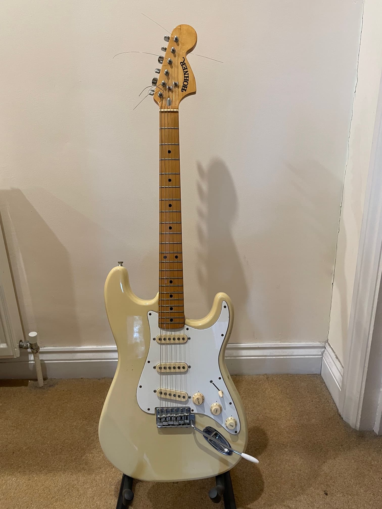 Anyway, your guitar is from the early 1980s. Late 1970s Hohner Strat copies weren’t quite as exact but this has the big headstock and the bullet truss rod like the Fenders of that period. The very, very black Hohner logo (still crisp after nearly 50 years) is also a distinctive feature of an early 1980s Japanese Hohner. They made them till around 1983, and then they were replaced by a Korean equivalent (which became the Arbor Series).
