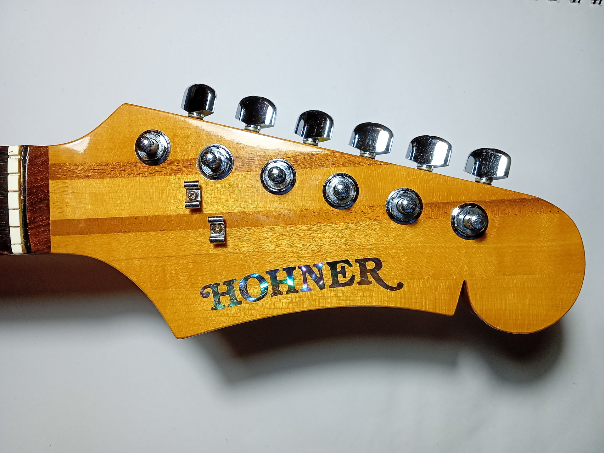 Hello philw. I will do. I had the same thought. It feels totally smooth to the fingertips and looks inlaid. But sometimes i look at it think is that a print. . I will get some fresh eyeballs on that. Yes i have seen pics of the bass with both though the ones with print/decal were black lettering. I suppose they done the same with the guitar version. Anyway thanks again i’ll keep you posted. Hoping hohner guitars are like buses, you don’t see one for 40 years, should be another couple along any minute now.