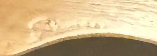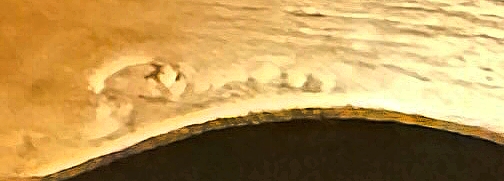 A couple of closeups and enhancement of the indentation on the edge of the headstock under the A string tuner: Looks like “Picasso” or “R something something 0340” maybe. Or a Rorschach test…
