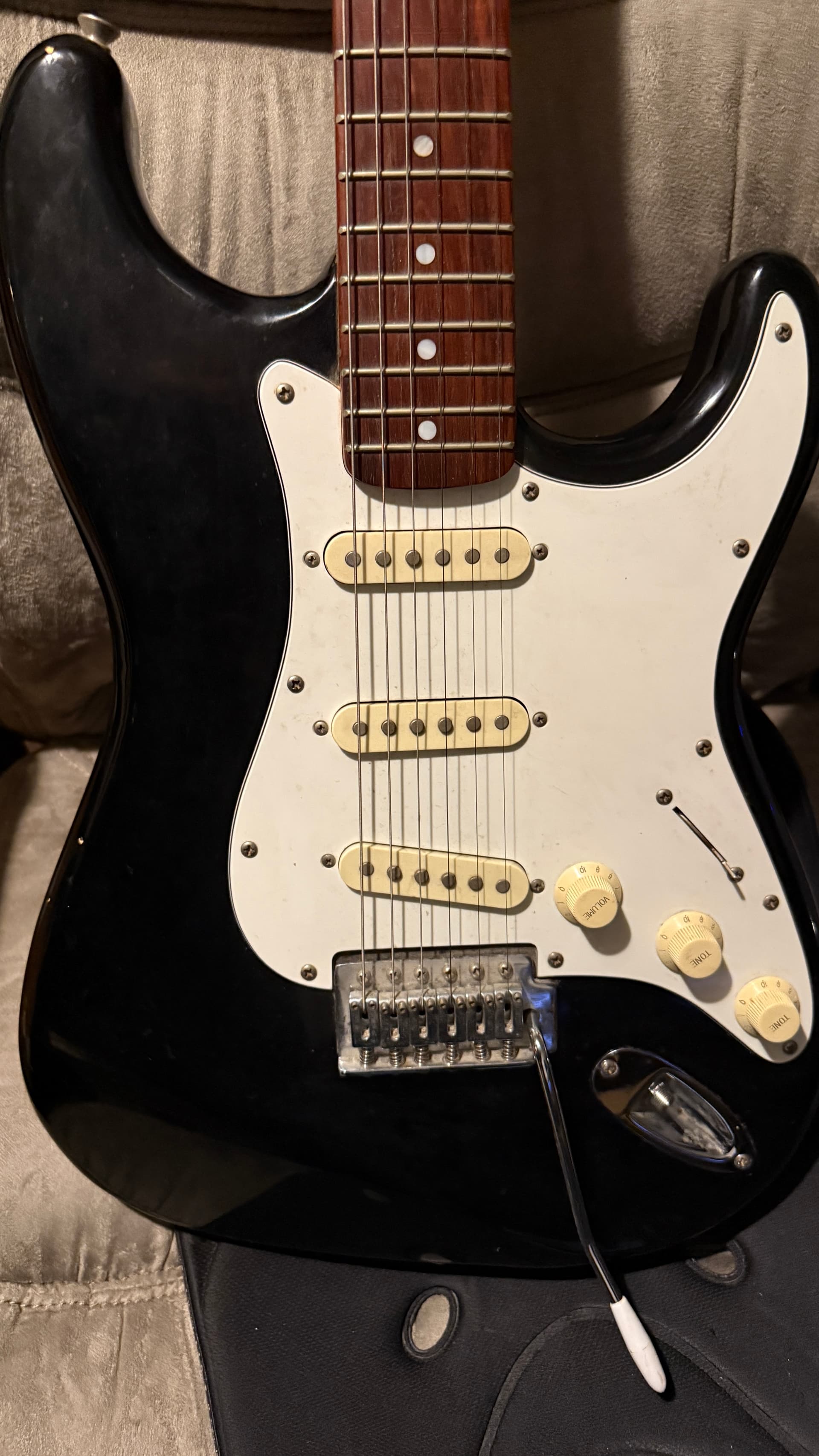 My first electric guitar, unscrewed the plate holding the neck in place, managed to get it back in place after loosening strings. May need to adjust again… high E string a bit off near the top three frets?